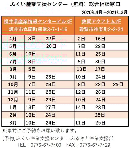ふくい産業支援センター総合相談窓口の無料相談日をご活用ください。経営に関するお困りごとや相談、計画策定、各種補助金申請などあらゆるご相談にお乗りします。ご相談は何度でも無料です。