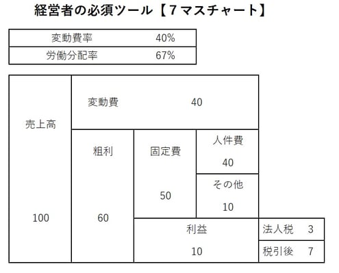 経営者の必須ツール【7マスチャート】による経営診断、改善方針の提案をしています。決算書が無くても5つの質問だけで作成できるこのチャートは、経営者が知っておくべき情報だけを詰め込んだツールです。